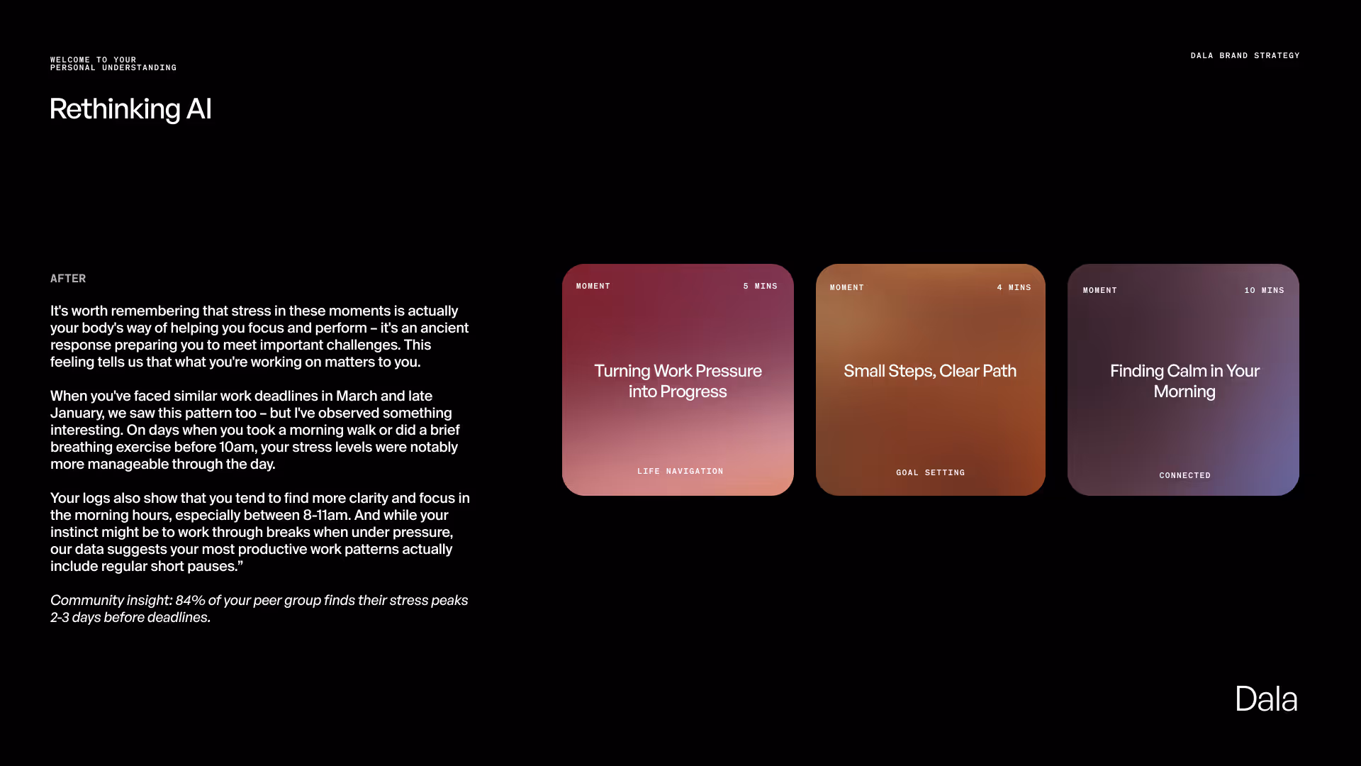 It's the thinking that sits underneath everything your brand does. Your positioning, your story, what you stand for, who you're for, and how you talk about it. It's the foundation that makes your marketing, design, and communications make sense together.